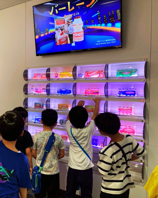 工場で作られている商品が展示されていると「あ、これ知ってる!」「パパが飲んでる!」などの声が出ていました。